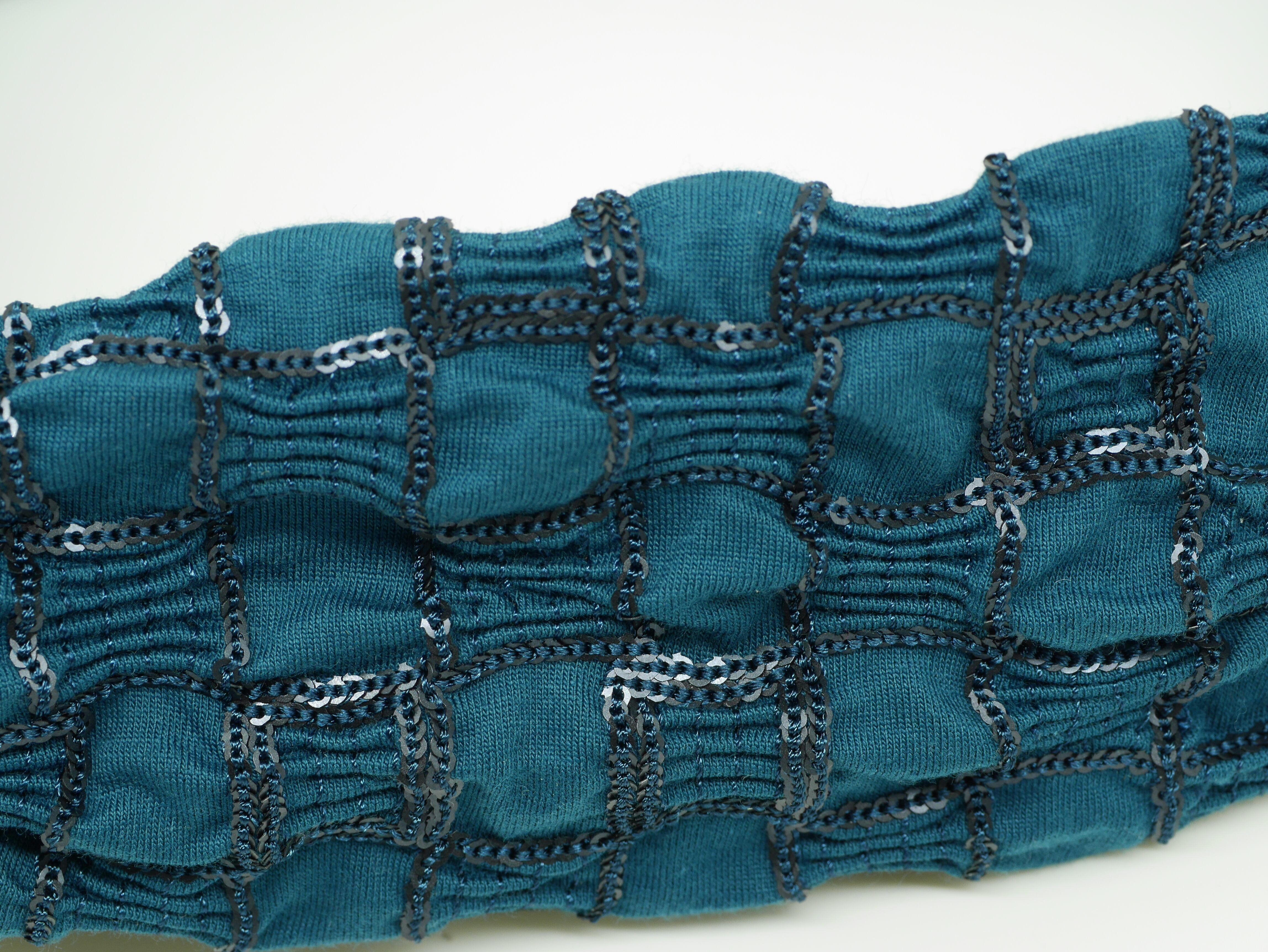 2㎜の極小スパンコールの幾何学模様とゴムシャーリングが入っています。