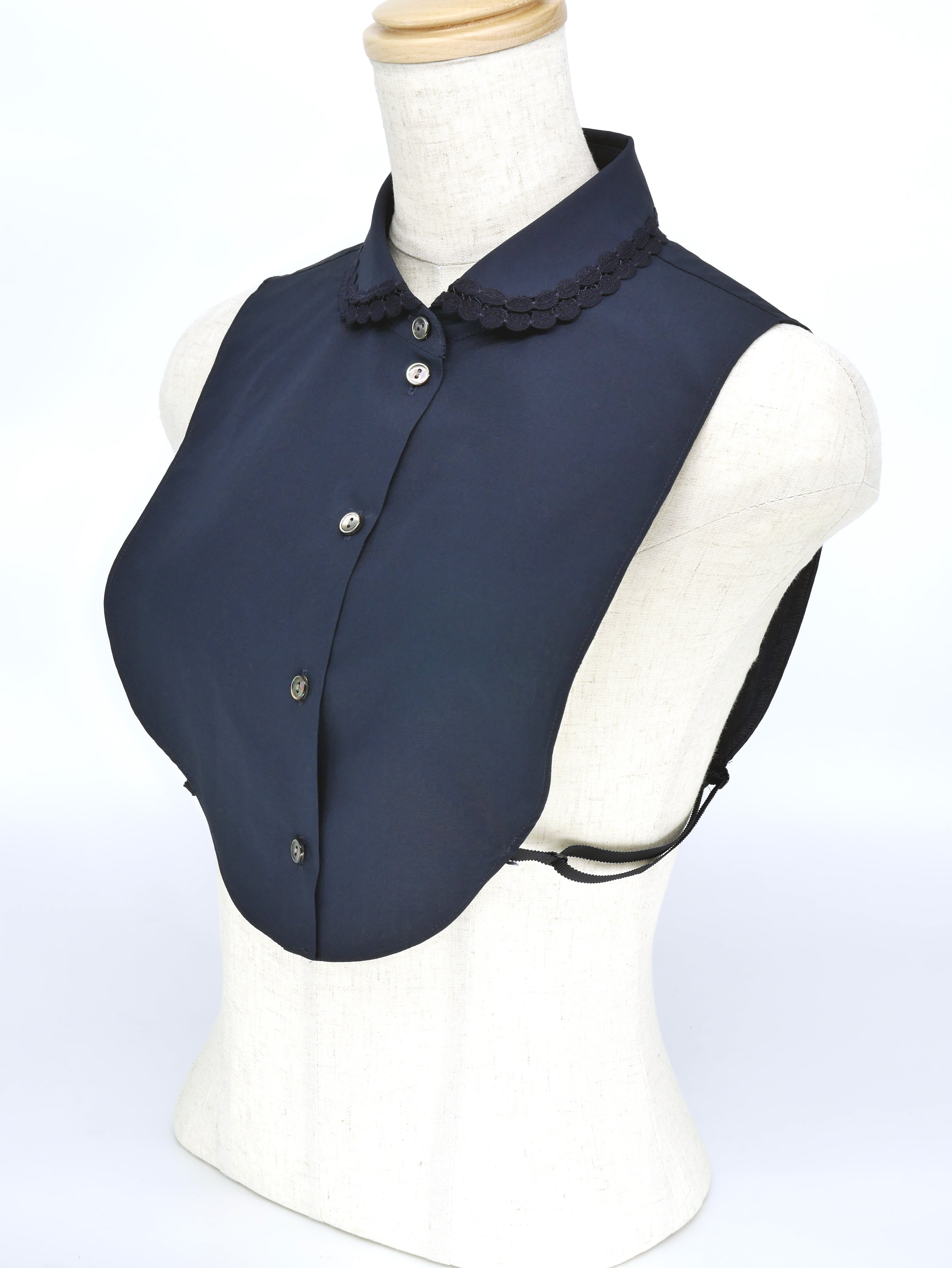 衿のラインに自然に沿うようにつくられているので、繊細な立体感が出て顔まわりをきれいに見せてくれます。
