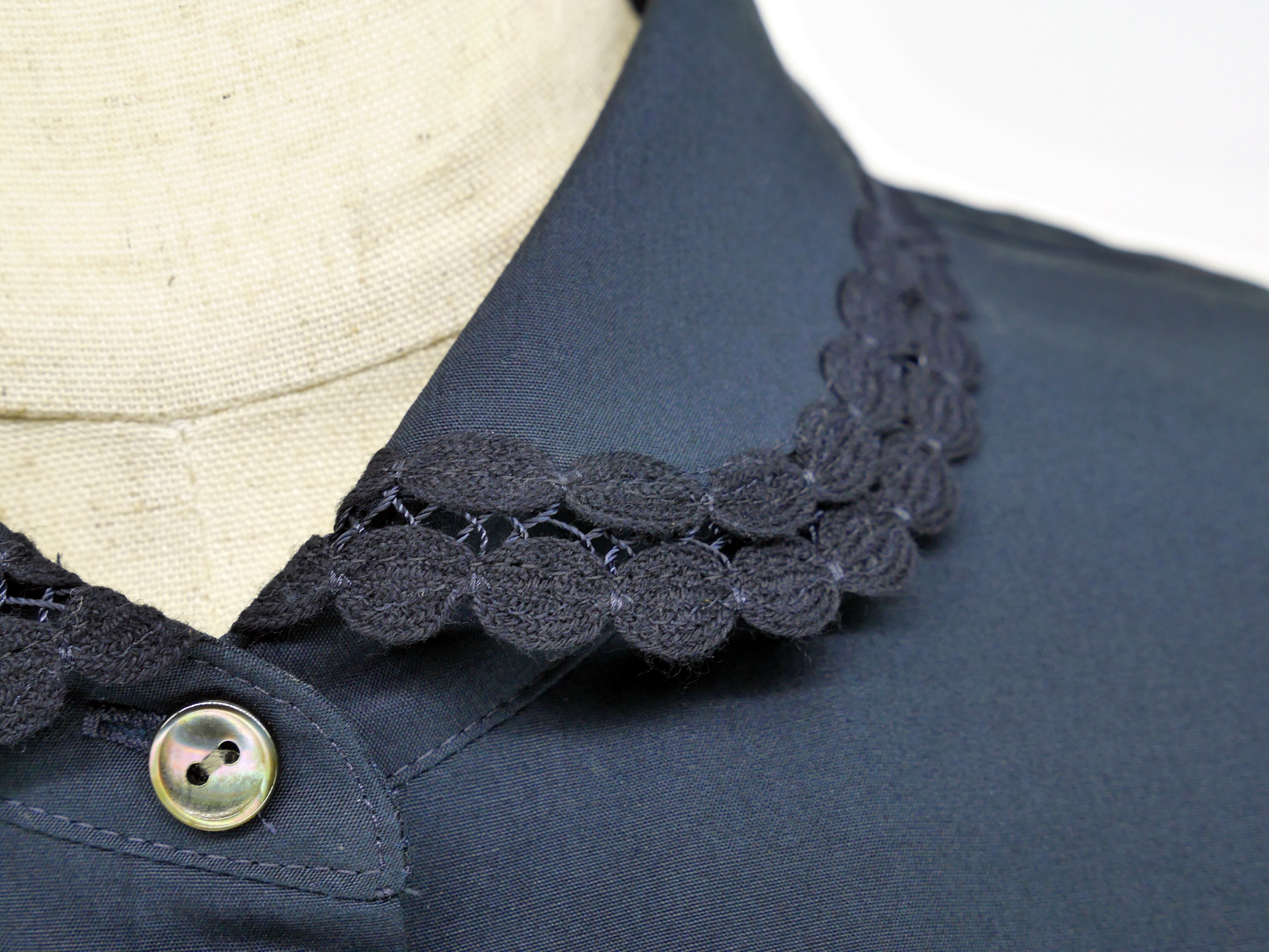 小ぶりな衿に、上品なアクセントになるオリジナルのブレードをあしらいました。