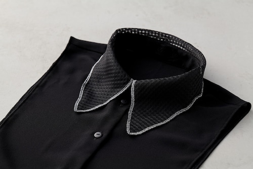 襟ふちを刺繍で仕上げることにより、スッキリとしたイメージに。