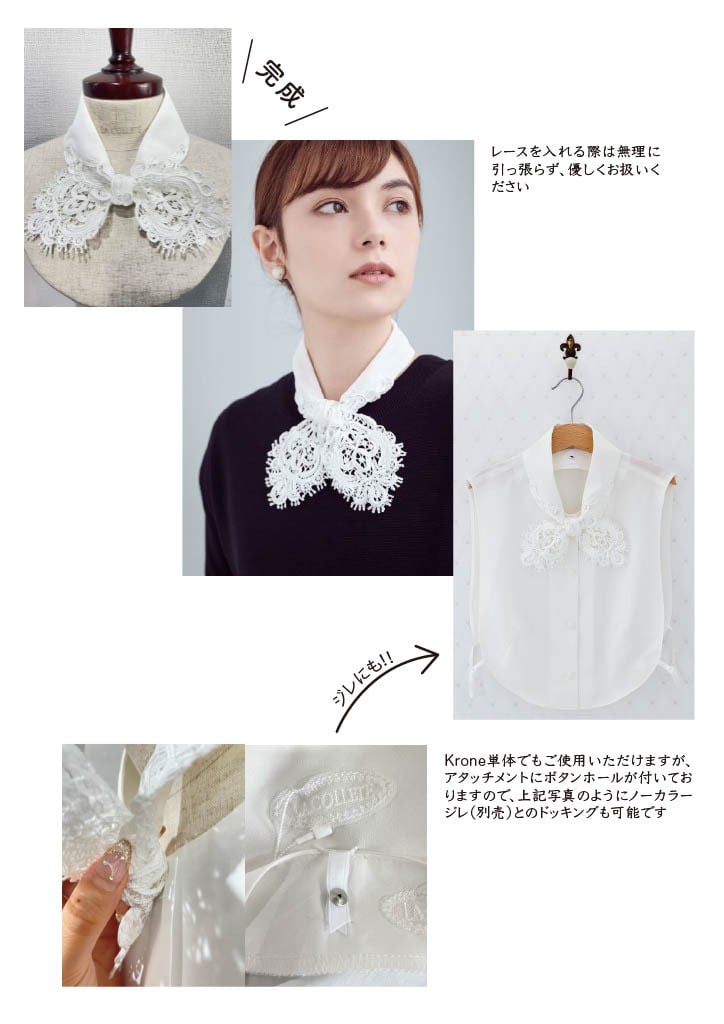 刺繍で繊細に仕立てたレースを贅沢に使用した、スカーフのように巻いて使うつけえり。