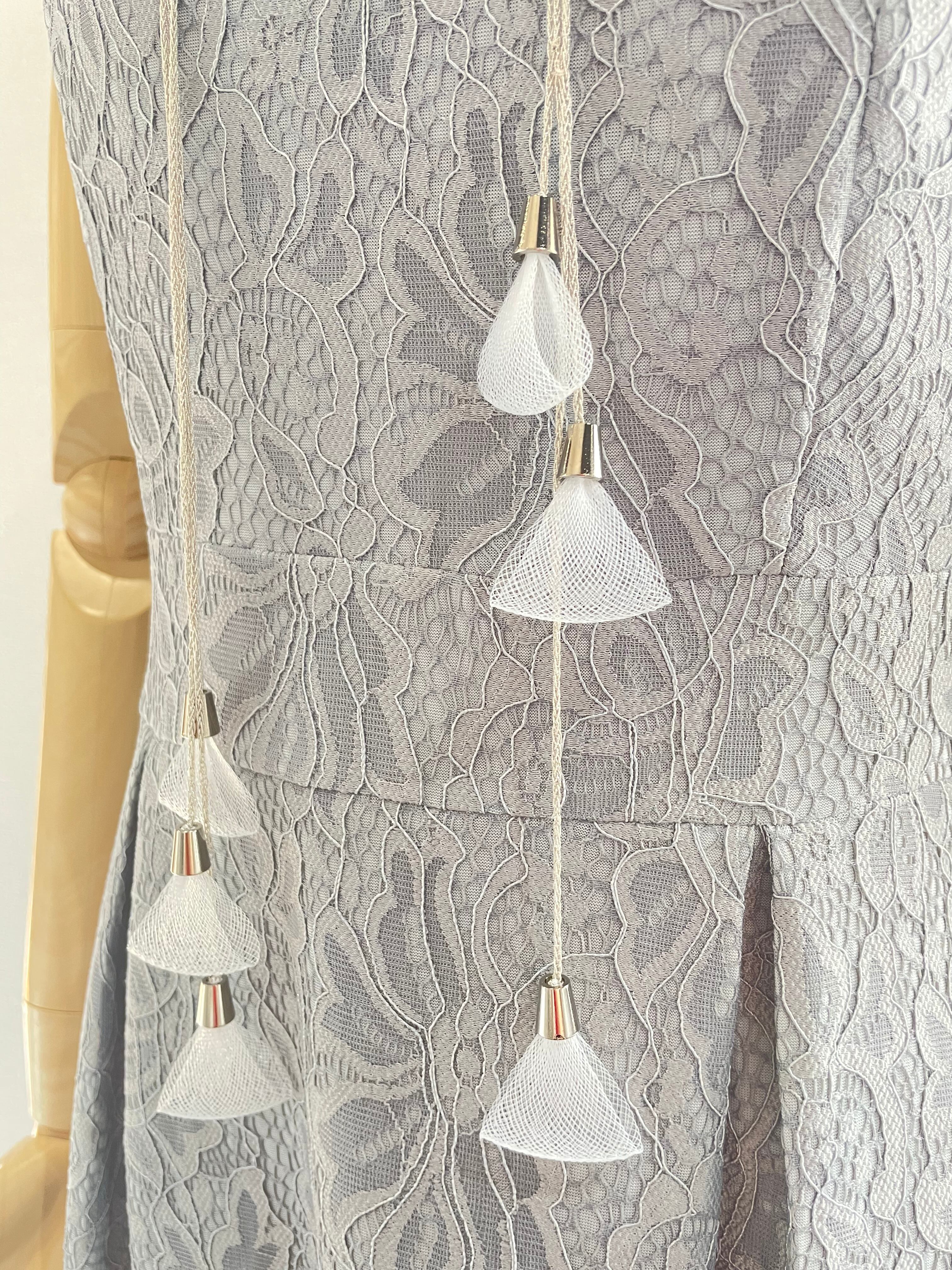 固めのオーガンジーで三角形の形を作り、中を空洞にして軽めに仕上げました。