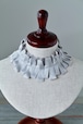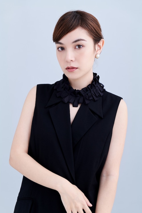 リボンを重ねたようなデザインがポイントで、紐を最大限に絞りチョーカー風にしてタートルネックのニットと合わせるのもお勧めです。