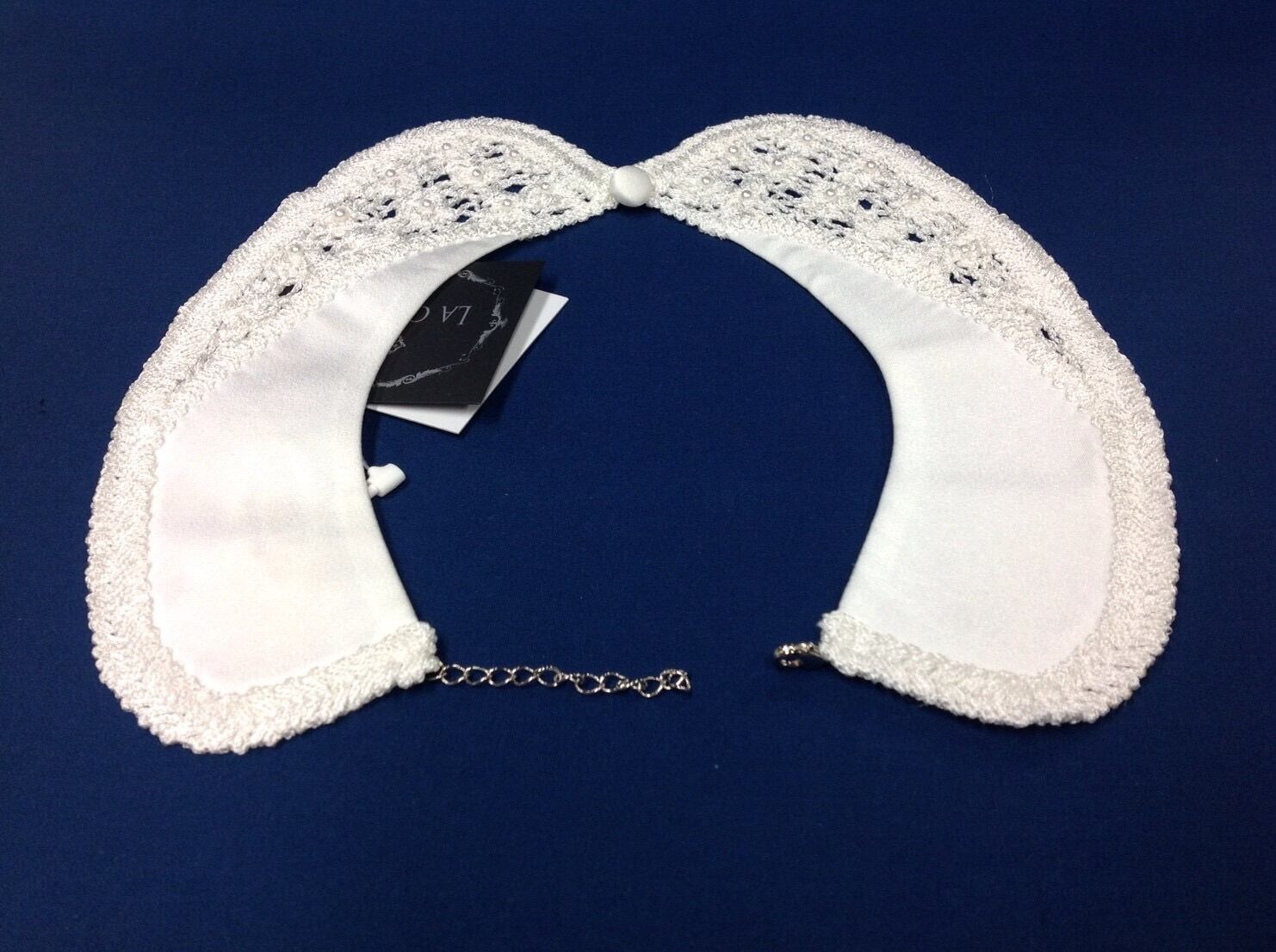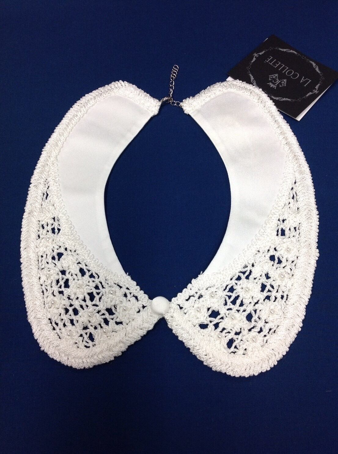 透け感のあるレースにビジューを付けたエレガンスなつけ襟です。