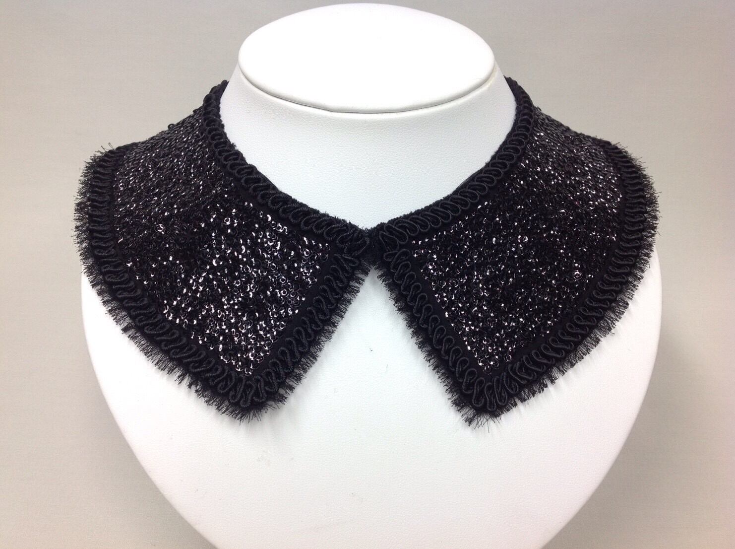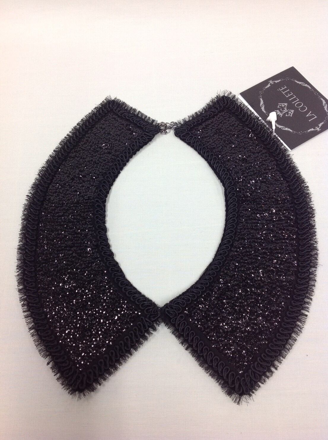 スパンコールで埋めつくされた豪華なフラットカラー。フチをジャバラコードで刺繍することで、立体感のある造りに。